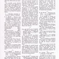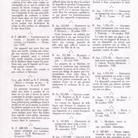 0123 - Page 113 - Brevets. B. F. 687.101. - Préparation du thymol ou de ses isomères ou homologues. - Schering-Kahlbaum A. G. - 21 décembre 1929 / B. F. 688.047. - Procédé de fabrication d'acétaldéhyde. - I. G. Farbenindustrie A. G. - 11 janvier 1930 / B. An. 332.142. - Procédé de fabrication de dentifrice. - M. Ogawa. - 8 octobre 1929 / B. An. 332.590. - Procédé de préparation de poudre de savon. - A. Welter. - 22 avril 1929 / B. An. 332.599. - Procédé de fabrication de savon en poudre. - A. Welter. - 22 avril 1929 / B. An. 332.635. - Procédé de fabrication d'acétaldéhyde. - J.-Y. Johnson. - 22 avril 1929 / B. Am. 1.776.087. - Procédé de fabrication de menthol inactif. - K. Schollkopf. - 29 juin 1927 / B. Am. 1.776.088. - Procédé de fabrication de menthol inactif. - K. Schollkopf. - 30 juin 1927 / B. All. 446.598. - Procédé de fabrication d'émulsions stables de paraffine. - E. Glucksmann. - 15 juillet 1925 / B. F. 687.969. - Boîte à poudre. - E. Soyez. - 10 janvier 1930 / Cert. add. 36.479 au B. F. 667.224. - Etui pour rouge à lèvres. - J.-C.-E. Vuillemin. - 22 mars 1929
