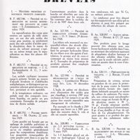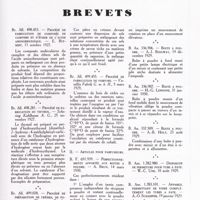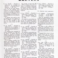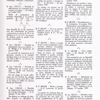 0183 - Page 179 - Brevets. B. An. 334.260. - Procédé de fabrication de chlorure de benzyle. - Imperial chemical industries, 1er juin 1929 / B. An. 334.261. - Procédé de fabrication de chlorure de benzyle et de benzaldéhyde. - Imperial chemical industries, 1er juin 1929 / B. An. 334.427. - Procédé de fabrication d'acétaldéhyde. - Imperial chemical industries, 21 octobre 1920 / B. Am. 1.776.667. - Procédé de fabrication de menthol inactif. - Rheinische Kampfer Fabrik G. m. b. H. - 20 septembre 1928 / B. Am. 1.776.668. - Procédé de fabrication de menthol inactif. - Rheinische Kampfer Fabrik G. m. b. H. - 20 septembre 1928 / B. Am. 1.776.669. - Procédé de fabrication de menthol inactif. - Rheinische Kampfer Fabrik. - 20 septembre 1928 / B. Am. 1.776.670. - Procédé de fabrication de menthol inactif. - Rheinische Kampfer Fabrik G. m. b. H. - 20 septembre 1928 / B. Am. 1.776.671. - Procédé de fabrication de menthol inactif. - Rheinische Kampfer Fabrik G. m. b. H. - 20 septembre 1928 / B. Fr. 688.896. - Vaporisateur de poche. - Société Marcas et Dardel. - 15 avril 1929 / Cert. Add. 36.946 au B. Fr. 672.845. - Boîte à poudre de riz à auto-compression de la poudre. - C. Davis. - 24 mars 1929