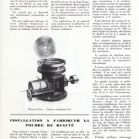 0681 - Page 693 - Brevets. B. F. 691.718. - Perfectionnements aux bâtons de rouge. - Société anonyme Oja, 11 mars 1930 / B. Am. 1.759.451. - Récipient de poche destiné à contenir des fards, crèmes, etc. - F.-B. Gordon, 21 mars 1929 / B. Am. 1.759.206. - Dispositif de fermeture pour tube à pâte. - E.-L. Pohl, 17 février 1927 / B. Am. 1.760.015. - Boîte à poudre. - E.-J. Schwabe, 13 novembre 1928 / B. Am. 1.760.481. - Boîte à poudre en forme de polygone. - C.-N. Coryell, 18 février 1928 / B. Am 1.761.615. - Boîte à poudre. - C.-N. Coryell, 26 novembre 1928 / B. Am. 1.765.033. - Boîte à poudre. - W.-F. Shelgren, 15 mai 1929 / Br. F. 686.213. - Distributeur à tamis mobile. - J. Maillard, 6 décembre 1929 / Br. F. 686.513. - Vaporisateur. - J. Dreyfus, 13 décembre 1929 / Br. F. 686.581. - Boîte à poudre, à fards. - M. Holzmann, 13 décembre 1929 / Br. F. 686.680. - Nouveau tube à rouge liquide pour les lèvres. - F. Vicki, 16 décembre 1929 / Cert. Add. 36.685 au brevet 672.845. - Boîte à poudre de riz à auto-compression de la poudre. - Ch. Davis, 18 août 1929 / Br. Am. 1.771.147. - Boîte à poudre. - The Scovill Manufacturing C°, 9 octobre 1928 / B. F. 691.918. - Boîte à poudre. - H. et G. Klotz, 2 décembre 1929 / B. An. 323.811. - Dispositif de fermeture pour tubes à pâte. - J.-G. Brenner et S. Casami. - 13 octobre 1928 / B. Am. 1.745.969. - Combinaison de miroir et de crayon pour fard. - A.-G. Shields. - 7 juillet 1928