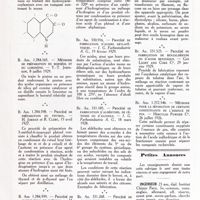 0413 - Page 413 - Brevets. B. Am. 1.783.584. - Procédé de fabrication d'aldéhydes hydroxyaromatiques. - G. Reddelien, 27 juin 1928 / B. Am. 1.784.165. - Méthode de préparation du bornéol et du limonène. - Y.-T. Johnson, 8 juillet 1929 / B. Am. 1.784.598. - Procédé de préparation du thymol. - H. Jordan et R. Clerc, 15 avril 1927 / B. Am. 1.784.599. - Procédé de fabrication de phénols. - H. Jordan et R. Clerc, 15 août 1927 / Br. An. 330.916. - Procédé de fabrication d'acides arylacétiques. - I. G. Farbenindustrie A. G., 19 février 1929 / Br. An. 331.185. - Procédé de fabrication d'aldéhydes, de cétones ou d'alcools. - I. G. Farbenindustrie A. G., 18 mars 1928 / Br. An. 331.268. - Procédé de fabrication de savons en filaments, en flocons, en laine, etc. - H. Welter, 26 mars 1929 / Br. An. 331.525. - Procédé de fabrication de benzaldéhyde ou d'acide benzoïque. - Gas Light and Coke C°, 29 janvier 1929 / Br. Am. 1.772.546. - Méthode pour la séparation de certains constituants de l'essence de pin. - Hercules Powder C°, 26 juillet 1926 / Petites annonces