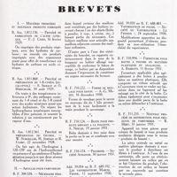 0417 - Page 417 - Brevets. B. F. 697.971. - Produit spécial liquide ou solide pour permettre la coupe de la barbe. - C. Thivard, 21 septembre 1929 / B. F. 697.993. - Shampooing volatil ininflammable. - H. Ciaudo, 5 avril 1929 / B. F. 698.230. - Procédé de fabrication de mélanges de cétones aromatiques grasses. Schering Kalbaum A.G., 30 juin 1930 / B. F. 698.716. - Perfectionnements à la fabrication des savons. Société fabre et Compagnie, 11 octobre 1929 / B. F. 699.814. - Procédé de fabrication de paillettes de savon roulées. - Etablissements Rocca, Tassy et de Roux, 15 juillet 1930 / Petites annonces