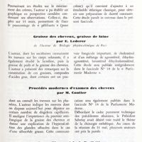 0071 - Page 71 - Pouvoir hyhroscopique de la glycérine et du diéthylèneglycol / Mûrissement des crèmes [E. Mahler] / Graisse des cheveux, graisse de laine [E. Lederer] / Procédés modernes d'examen des cheveux [M. Contier] / La position sociale de l'esthétique [Docteur Claoué]