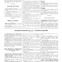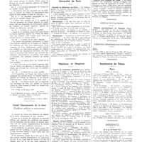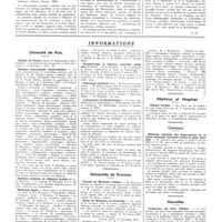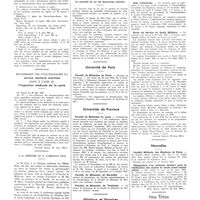 1311 - Page 1307 - Informations. Université de Paris. Cours libre d'anthropo-biologie / Universités de province. Faculté de médecine d'Aix-Marseille / Faculté de médecine d'Alger / Faculté de médecine de Bordeaux / Faculté de médecine de Lille / Faculté de médecine de Lyon / Institut de médecine et de pharmacie coloniales de Marseille / Ecole de médecine d'Amiens / Ecole de médecine d'Angers / Ecole de médecine de Caen / Ecole de médecine de Dijon / Ecole de médecine de Grenoble / Ecole de médecine de Limoges / Ecole de médecine de Poitiers / Ecole de médecine de Rouen / Hôpitaux et hospices. Hôpital des réfugiés de la Dordogne, à Clairvive / Hôpital des réfugiés de Clermont-Ferrand / Hôpital franco-musulman / Hospice Bretonneau / Hospices civils de Bordeaux / Hôpital mixte et hospice de Bayonne / Concours. Externat / Médecins brevetés de la Marine marchande / Hospice de Coulommiers / Nouvelles. Académie de médecine