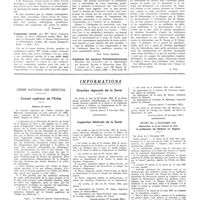1381 - Page 1377 - Informations. Ordre national des médecins. Conseil départemental de la Seine / Directeur régional de la santé / Inspection de la santé / Concours pour le recrutement de médecins inspecteurs adjoints de la santé / Institution d'un diplôme d'état d'assistant ou d'assistante médico-social / Commission permanente de coordination des conseils de perfectionnement des écoles de service social