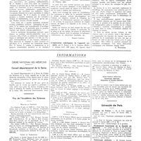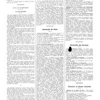 0719 - Page 703 - Informations. Université de Paris / Cours de biologie expérimentale / Cours de psychiatrie médico-légale élémentaire / Universités de Province. Stage d'orientation professionnelle de la Faculté de médecine de Montpellier / Faculté de médecine de Montpellier / Faculté de médecine de Nancy / Concours. Assistants d'obstétrique des hôpitaux de Paris / Nouvelles. Psychologie de la production industrielle / Distinctions honorifiques. Citation à l'ordre de la nation / Légion d'honneur / Médaille des épidémies / Nos échos. Naissances / Mariage / Décès / Soutenance de thèses. Paris