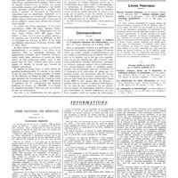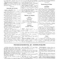 0752 - Page 736 - Informations. Concours et places vacantes / Nouvelles diverses / Comité national de défense contre la tuberculose / Ecole homéopathique de Paris (hôpital Saint-Jacques) / Société anatomique de Paris / Société de thérapeutique / Distinctions honorifiques. Citation à l'ordre de la nation / Docteur «Honoris causa» / Médaille des épidémies / Nos échos. Naissance / Décès / Soutenance de thèses. Paris / Toulouse / Renseignements et communiqués