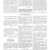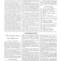 0718 - Page 702 - Informations. Ordre national des médecins. Communiqué urgent / Praticiens d'origine étrangère auxquels l'exercices de leur profession est autorisé / Praticiens d'origine étrangère auxquels l'exercice de leur profession est interdit / Conseil supérieur d'hygiène publique de France / Commission permanente des stations hydrominérales et climatiques / Comité permanent chargé d'élaborer la doctrine de la médecine du travail et de fixer les règles générales d'action des médecins inspecteurs du travail / Association générale des médecins de France. Bourses familiales du Corps médical / Dévolution des biens constituant le patrimoine des syndicats dentaires dissous / Examen des spécialités pharmaceutiques / Université de Paris