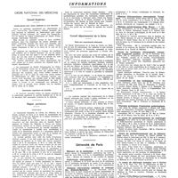 0784 - Page 768 - Informations. A la jeunesse médicale / Prix de l'Académie des sciences / Université de Paris. Clinique de neurochirurgie de l'hôpital de la Pitié / Universités de Province. Inauguration du centre de médecine préventive de l'Université de Bordeaux / Faculté de médecine de Lille / Faculté de médecine de Nancy / Hôpitaux psychiatriques / Concours et places vacantes / Nouvelles diverses. Société médico-psychologique / Nos échos. Naissances / Décès / Renseignements et communiqués