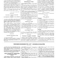 0736 - Page 720 - Informations. Université de Paris. Clinique des maladies infectieuses de l'hôpital Claude-Bernard / Clinique des maladies mentales et de l'encéphale / Clinique des maladies du système nerveux, hospice de la Salpêtrière / Clinique médicale de l'hôpital Bichat / Clinique médicale de l'hôpital Broussais-La Charité / Clinique médicale de l'hôpital Cochin / Clinique médicale de l'Hôtel-Dieu / Clinique médicale de l'hôpital Saint-Antoine / Clinique médicale propédeutique de l'hôpital Broussais-La Charité / Clinique de neurochirurgie de l'hôpital de la Pitié / Clinique obstétricale Baudelocque / Clinique obstétricale de la Maternité de Port-Royal / Clinique obstétricale Tarnier / Clinique ophtalmologique de l'Hôtel-Dieu / Clinique oto-rhino-laryngologique de l'hôpital temporaire Piccini / Clinique de la tuberculose de l'hôpital Laennec / Clinique urologique, Hôpital Cochin / Universités de Province. Faculté de médecine de Lille / Faculté de médecine de Lyon / Faculté de médecine de Toulouse / Concours et places vacantes / Nos échos. Naissances / Mariage / Décès / Renseignements et communiqués
