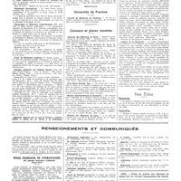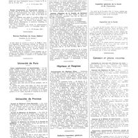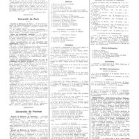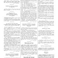 0651 - Page 627 - Informations. Université de Paris. Clinique médicale de l'Hôtel-Dieu / Clinique thérapeutique chirurgicale de l'hôpital de Vaugirard / Clinique médicale propédeutique de l'hôpital Broussais-La Charité / Clinique de neuro-chirurgie de l'hôpital de la Pitié / Clinique obstétricale Baudelocque / Clinique obstétricale de la maternité de Port-Royal / Clinique obstétricale Tarnier / Clinique ophtalmologique de l'Hôtel-Dieu / Clinique oto-rhino-laryngologique de l'hôpital temporaire Piccini / Clinique thérapeutique médicale de l'hôpital Saint-Antoine / Clinique de la tuberculose de l'hôpital Laennec / Clinique urologique Guyon de l'hôpital Cochin / Cours de la Faculté de médecine. Cours d'anatomie / Cours d'anatomie pathologique / Cours de bactériologie / Cours de biochimie médicale / Cours d'histoire de la médecine et de la chirurgie / Cours d'histologie / Cours d'hygiène / Cours d'hydrologie thérapeutique et climatologie / Cours de médecine légale / Cours complémentaire d'obstétrique / Cours de parasitologie / Cours de pathologie chirurgicale / Cours de pathologie médicale / Cours de pathologie expérimentale et comparée / Cours de pharmacologie / Cours de physiologie / Cours de physique / Cours de thérapeutique
