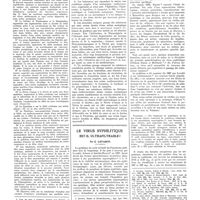 0019 - Page 19 - Travaux originaux. Étude expérimentale de l'action sur la circulation, la respiration et la diurèse des analeptiques cardiovasculaires. Par MM. Lucien Dautrebande et Robert Charlier / Le virus syphilitique est-il ultrafiltrable ? Par C. Levaditi