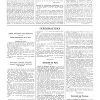 0015 - Page 15 - Informations. Ordre national des médecins. Région sanitaire de Paris / Médaille du Professeur J. Andérodias / Comité permanent de la médecine du travail / Université de Paris. Faculté de médecine de Paris / Cours de pathologie médicale / Clinique cardiologique (Broussais) / Cours d'anatomie pathologique oculaire / Cours de perfectionnement sur la résection endo-urétrale / Conférence à la Sorbonne / Universités de Province. Faculté de médecine de Bordeaux / Faculté de médecine de Lille / Faculté de médecine de Lyon / Faculté de médecine de Nancy / Faculté de médecine de Toulouse / Ecole de médecine de Clermont-Ferrand / Hôpitaux de Paris et Province. Mutations des chirurgiens des hôpitaux de Paris / Conférences de stomatologie / Hôpitaux de Bordeaux