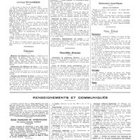 0060 - Page 60 - Informations. Concours et places vacantes. Nouvelles diverses. Académie de médecine / Préservation de l'enfance contre la tuberculose / Maison de la chimie / Analele Institutului Victor-Babes / Connaissance de l'enfant / Distinctions honorifiques. Légion d'honneur / Médaille d'honneur du service de santé / Nos échos. Naissances / Mariage / Décès / Renseignements et communiqués
