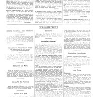 0700 - Page 676 - Informations. Universités de Province. Faculté de médecine de Lyon / Faculté de médecine de Nancy / Ecole de médecine de Reims / Concours et places vacantes / Nouvelles diverses. Société de médecine du travail de Provence / Prix Testut et prix Argut de l'Académie de médecine / Prix de l'Académie Duchenne de Boulogne / Nos échos. Naissances / Décès / Renseignements et communiqués