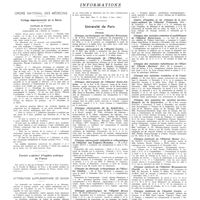 0716 - Page 692 - Informations. Université de Paris / Clinique thérapeutique médicale de l'hôpital Saint-Antoine / Universités de Province. Faculté de médecine de Lille / École de médecine de Rennes / Inspection de la santé / Concours et places vacantes / Nouvelles diverses / Société française d'électrothérapie et de radiologie / Nos échos. Naissances / Décès / Soutenance de thèses. Paris / Bordeaux / Renseignements et communiqués