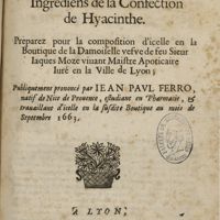 - Discours sur les simples ingrediens de la confection de Hyacinthe...