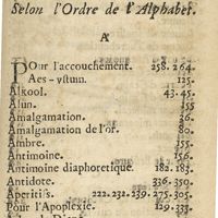 0415 - Page sans numérotation - Table selon l'ordre de l'alphabet