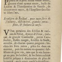 0093 - Page 81 - Emplâtre d'André de la Croix, pour guérir toutes playes profondes, dont on se doit servir sans tentes / Emplâstre de Bailleul, pour toute sorte de fractures, dislocations, grandes contusions, & foulures de nerfs