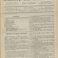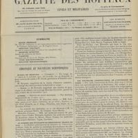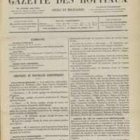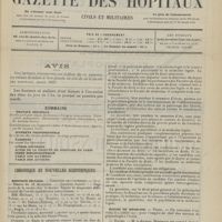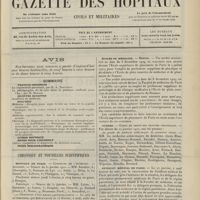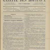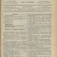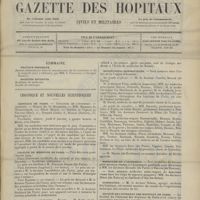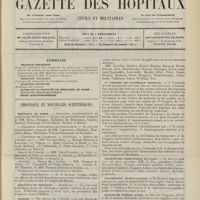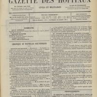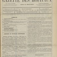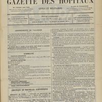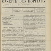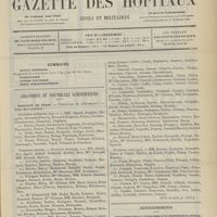 0011 - Page 1 - Sommaire / Chronique et nouvelles scientifiques. Hôpitaux de Paris / Faculté de médecine de Paris / Facultés de médecine / Écoles de médecine / Distinctions honorifiques / Ministère de l'intérieur / Nomination / Société de l'internat des Hôpitaux de Paris. (Voir la suite des Nouvelles, p. 10)