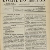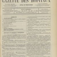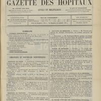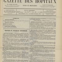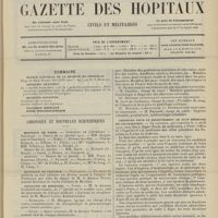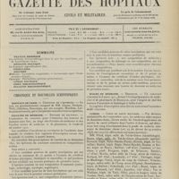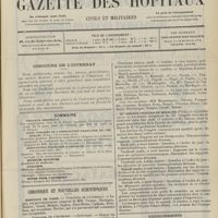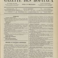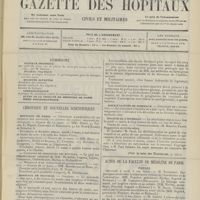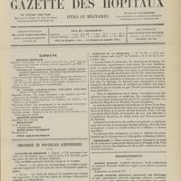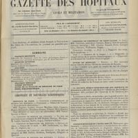 - Gazette des hôpitaux civils et militaires (Lancette française), 1828-1947 ; table: 1887 à 1914