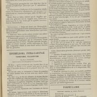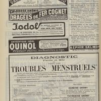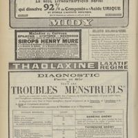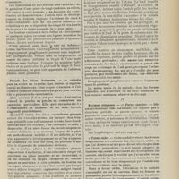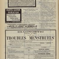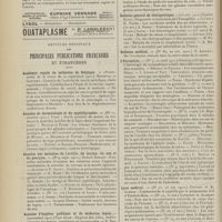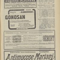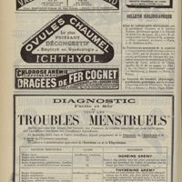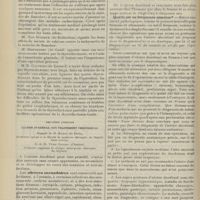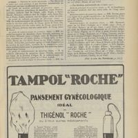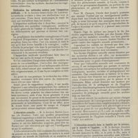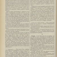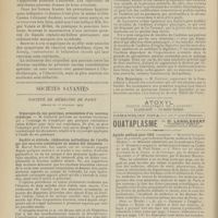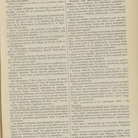 1994 - Page 1984 - Sociétés savantes. Société de chirurgie. (Séance du 7 décembre 1910 (fin)). Pylorectomie. M. Walther / (Séance du 14 décembre 1910). Prolapsus vaginal après l'hystérectomie. M. Potherat, sur la communication de M. Tuffier / Tuberculose iléo-caecale et appendicite tuberculeuse. M. Legueu, sur une observation de M. Coville... / Autoplastie de la totalité de l'urètre pénien par une muqueuse vaginale. M. Legueu, sur une observation de M. Tanton / Quatre observations de cholédocotomie. M. Launay, sur quatre observations de M. Schmidt... / Hypertrophie du thymus. Thymectomie. M. Launay, sur une observation de M. Veau / Société de biologie. (Séance du 10 décembre 1910). La réaction de Pettenkofer, applications empiriques à la coprologie. M. H. Triboulet / Etudes stalagmométriques. La tension superficielle des lipoïdes de l'organisme. M. H. Iscovesco / Altérations organiques et fonctionnelles des organismes végétaux sous l'influence du radium. M. Fabre, dans le service du Docteur Dominici