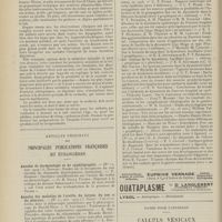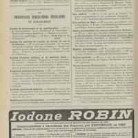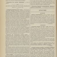 0121 - Page 111 - Chronique et nouvelles scientifiques. Association d'enseignement médical des Hôpitaux de Paris / Nécrologie / Articles originaux des principales publications françaises et étrangères. Annales d'hygiène publique et de médecine légale / Archives d'électricité médicale expérimentales et cliniques / Archives de médecine des enfants / Archives de médecine et de pharmacie militaires / Archives de médecine navale / Archives des maladies de l'appareil digestif et de la nutrition / Archives générales de chirurgie / Archives générales de médecine / Bulletin mensuel de la Société d'études scientifiques sur la tuberculose / Bulletins et mémoires de la Société anatomique de Paris / Gazette hebdomadaire des sciences médicales de Bordeaux