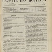 2047 - Page 2037 - Sommaire / Chronique et nouvelles scientifiques. Hôpitaux de Paris / Hôpitaux de province / Facultés de médecine. (Voir la suite des Nouvelles, p. 2048)