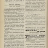 0114 - Page 104 - Pratique médicale. L'insuffisance gastrique / Articles originaux des principales publications françaises et étrangères. Annales de dermatologie et de syphiligraphie / Annales des maladies de l'oreille, du larynx, du nez et du pharynx / Annales médico-psychologiques / Boston medical and surgical Journal / Notes pour l'internat. Calculs vésicaux
