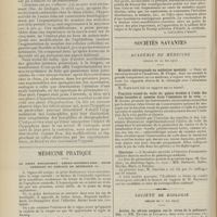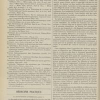 0146 - Page 136 - Médecine pratique. La « rigidité musculaire » et la « palpation-percussion ». Deux nouveaux symptômes pour la délimitation des organes et en particulier des lésions thoraciques. [M. Lance] / Sociétés savantes. Académie des sciences. (Séance du 17 janvier 1910). Sur l'accoutumance des bactéries aux antiseptiques. M. Louis Masson / Société médicale des Hôpitaux. (Séance du 21 janvier 1910). Syndrome abdominal suraigu au cours d'une endocardite infectieuse latente avec abcès du pancréas. MM. O. Josué et E. Velter / Délire suraigu au cours d'une pneumonie. Présence de pneumocoques dans le liquide céphalo-rachidien sans éléments figurés. Méningite diffuse histologique. MM. G. Guillain et Cl. Vincent