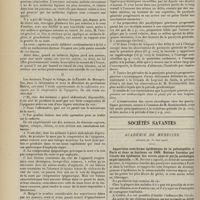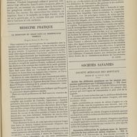 0029 - Page 19 - Sociétés savantes. Académie de médecine. (Séance du 4 janvier 1910). Nouveaux procédés pour fixer la ration du nourrisson. M. Lassablière / Société médicale des Hôpitaux. (Séance du 24 décembre 1909. (fin)). Le rythme de la glycosurie dans le diabète sucré. MM. A. Gilbert et P. Lereboullet / (Séance du 31 décembre 1909). Action de la morphine sur les leucocytes. MM. Achard, H. Bénard et Gagneux / Arthrite sporotrichosique du genou. M. P. Moure