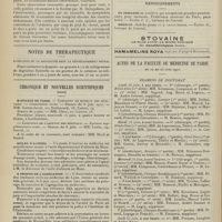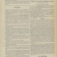 0091 - Page 81 - Sommaire / Chronique et nouvelles scientifiques. Hôpitaux de Paris / Hôpitaux de province / Facultés de médecine / Guerre / Statistique / Hôpital Cochin-Annexe / Actes de la Faculté de médecine de Paris. Thèses