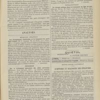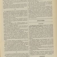0113 - Page 103 - Analyses. Chirurgie. Traitement chirurgical de la pleurésie tuberculeuse, l'abcès du poumon et l'empyème. (Emil G. Beck, Journ. amer. med. Assoc...). [F. Gardner] / Rétrécissement du rectum (Cassius C. Rogers. The Boston med. and surg. Journ...). [M. Lance] / Des ruptures spontanées de la rate au cours de la fièvre typhoïde (Robert C. Bryan, Annals of Surg...). [F. Gardner] / Pratique médicale. L'insuffisance gastrique