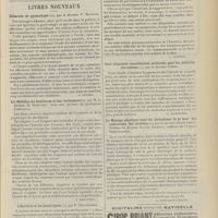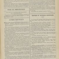 0075 - Page 65 - Pratique médicale. Une question nouvelle de thérapeutique : les ferments métalliques oxydants ; par M. le Docteur M. Chevrin / Livres nouveaux. Les maladies mentales dans l'armée française, par MM. A. Antheaume et R. Mignot. [P. Camus] / Traité de pathologie exotique par MM. Grall et Clarac. Le paludisme, par MM. Grall et Marchoux. [C. Dopter] / Notes pour l'internat. Granule. Phtisie aiguë granulique