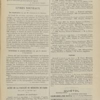1996 - Page 1986 - Livres nouveaux. Moeurs intimes du passé (3e série). Les morts mystérieuses de l'histoire (nouvelle édition), par le Docteur Cabanès. [A. Brochin] / Actes de la Faculté de médecine de Paris. Examens de doctorat / Thèses
