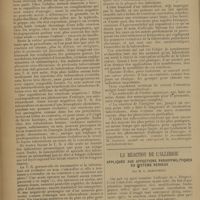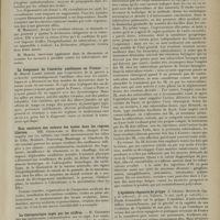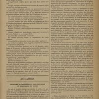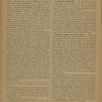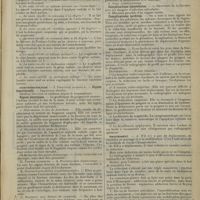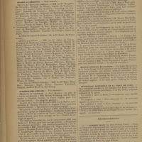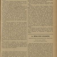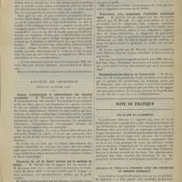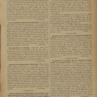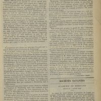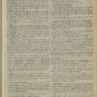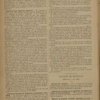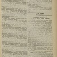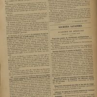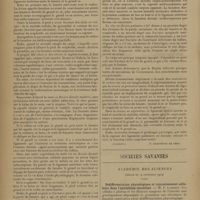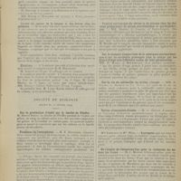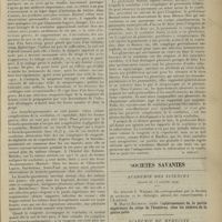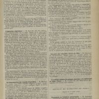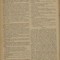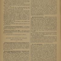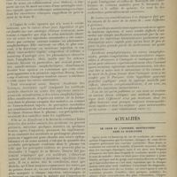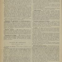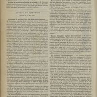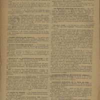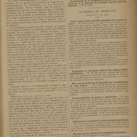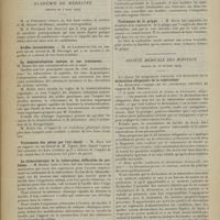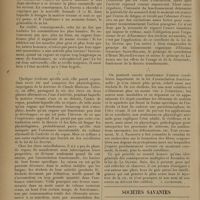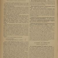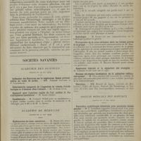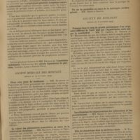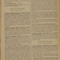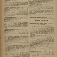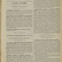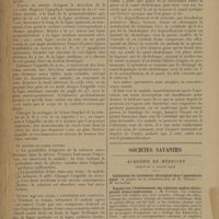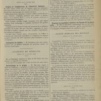 0099 - Page 91 - Sociétés savantes. Académie de médecine (séance de 28 janvier 1919). La rage. M. Martee / Conditions sanitaires de la ville de Lille pendant l'occupation allemande. M. Calmette / Les greffes osseuses segmentaires en chirurgie de guerre. M. Mauclaire / Société de biologie. (Séance du 25 janvier 1919). Développement complet des larves de tenebrio molitor obtenues au moyen d'une nourriture stérilisée à haute température (130 degrés). M. P. Portier / Action de l'urine sur le tréponème de la syphilis. MM. P.-P. Lévy et Guile / Sur les pigments des russules. M. C.-L. Gautier / Quelques remarques à propos de ce qu'on appelle la « position terrifiante » des animaux. M. M. Siedlecki... / Réclamation de priorité pour le procédé dit de Neumann ; incinération par les acides sulfurique et azotique. M. L. Lapicque / « Régénération » n'égale pas « réviviscence ». M. Bonnefon / Nouveau procédé de coloration du fer dans les tissus. Action de l'alizarine monosulfonate de sodium sur le fer inorganique. M. J. Mawas / Du cartilage articulaire et costal des individus adultes et vieux. M. Ed. Retterer