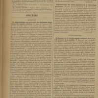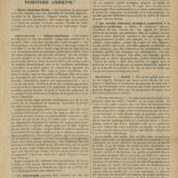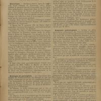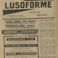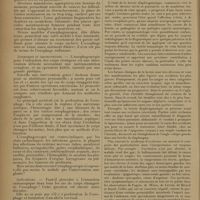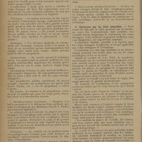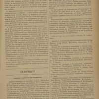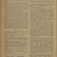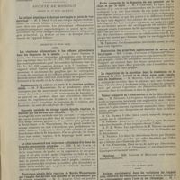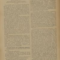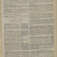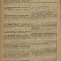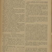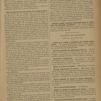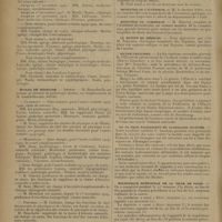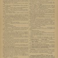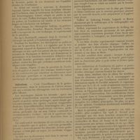 1228 - Page 1236 - Sociétés savantes. Société de biologie. (Séance du 8 décembre 1919). Tension superficielle et réaction de fixation. M. Kopachewski / Action du sérum des animaux infectés par le bacille pyocyanique sur la protéase de cette bactérie. MM. Launoy et Lévy-Bruhl / Action du fer colloïdal électrique sur la viscosité du sang. MM. Thieulin et Bernard / Etude chimique des cultures du cryptocoque de Rivolta. M. Musso / M. Souligoux : Pansement à l'éther, occupé par M. Vincent, M. Martin et étudié avec M. Vaudremer / Kyste gazeux solitaire du poumon. M. Sabrazès / Sphincters lisses plexiformes du poumon. MM. Dubreuil et Lamarque / Sac et canal endolymphatiques du cobaye. M. Portmann / Hypoglobulie précoce chez les grands blessés des membres. M M. Picque, Lacoste, Lartigaut / Société des sciences médicales & biologiques de Montpellier et du Languedoc méditerranéen. (Séance du 14 novembre 1919). Coagulation chloroformique des liquides d'hydrocèle. Valeur diagnostique. M. Lisbonne / Troubles ischémiques de la main par artérite ascendante. MM. Rimbaud et Boudet / Hernie traumatique secondaire du poumon. M. E. Chauvin / Un cas de muscle manieux. MM. Delord et Vinon