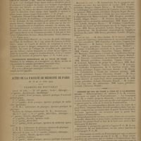 0090 - Page 82 - Nouvelles. Guerre / Commission supérieure consultative du service de santé / Université de Strasbourg / Nécrologie / Faculté de médecine de Paris / Actes de la Faculté de médecine de Paris du 3 au 8 février 1919. Examens de doctorat / Thèses