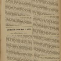 0022 - Page 12 - Sociétés savantes. Académie de médecine. (Séance du 7 janvier 1919) / Traitement des pneumonies et broncho-pneumonies à streptocoques. MM. Parisot et Lecaplain / Gangrène grippale. MM. Mélina, Moulonguet et Debray / Traitement de la grippe. MM. Barbary et Hamaide / Société de chirurgie. (Séance du 8 janvier 1919) / Greffes osseuses. M. Mauclaire, une communication de M. Bérard / Luxations récidivantes de l'épaule. M. Bazy fils / Le shock. M. Quénu / Anévrisme artérioso-veineux. M. Tuffier, sur une observation communiquée par M. Rocher