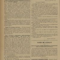 0049 - Page 41 - Médecine légale. Responsabilité médicale. Mort subite, chez un médecin, d'une jeune femme à la suite d'une injection médicamenteuse dans les veines ; par MM. Courtois-Suffit... et R. Giroux... / Actualités. Le coeur et l'appareil respiratoire dans la scarlatine. [M. Brelet]