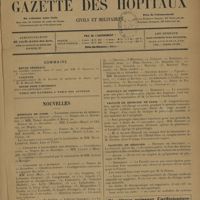 - Gazette des hôpitaux civils et militaires (Lancette française), 1828-1947 ; table: 1887 à 1914