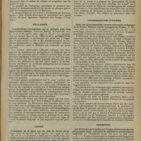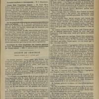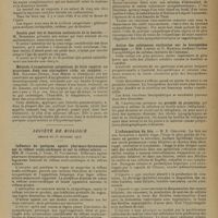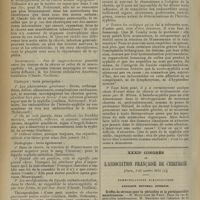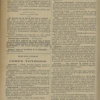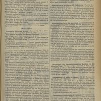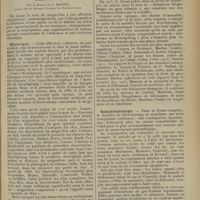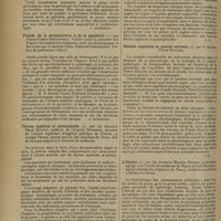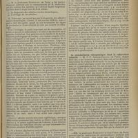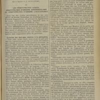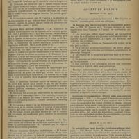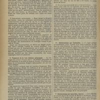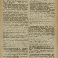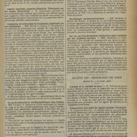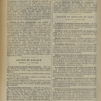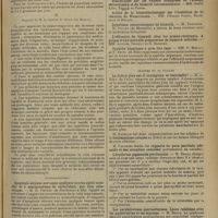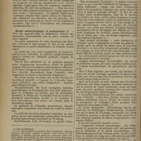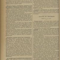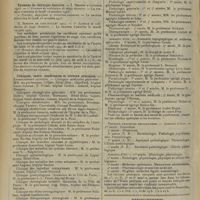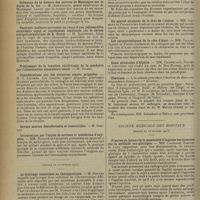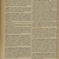 1669 - Page 1683 - Sociétés savantes. Société de biologie. (Séance du 1er décembre 1923). Les altérations du système nerveux dans un cas de maladie de Thomson. MM. Ch. Foix et L. Nicolesco / Anesthésie par le chloralose et excitabilité du système nerveux organo-végétatif. MM. L. Garrelon et D. Santenoise / Tuberculose chez le cobaye vivant dans les salles où sont soignés les phtisiques. MM. Robert Debré et Coste / (Séance du 8 décembre 1923). Les crachats hémoptoïques des tuberculeux renferment des spirochètes / Surcharge et dégénérescence élastique des cellules cartilagineuses de la trachée. M. Michel de Kervily / M. Feissly... : hémophilie / A propos de l'adsorbtion du salicylate de soude par le sérum sanguin. M. Coquoin / Société de médecine de Paris. (Séance du 24 novembre 1923). Un cas de paralysie du grand dentelé au cours de la scarlatine. M. Shaeffer / Diagnostic du fibrome utérin. M. Bloch-Vormser / Calculs biliaires et appendice. M. Peraire / De l'intoxication aiguë par les oeufs frais. M. A. Bernheim / La syphilis implacable. M. Galliot