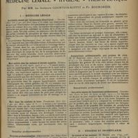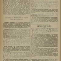 0106 - Page 98 - Jurisprudence et législation. Médecine. Exercice illégal. [H. Ribadeau Dumas] / Livres nouveaux. Manuel d'obstétrique et d'hygiène de la première enfance, par J. Vanverts et H. Paucot... / Atlas de parasitologie, par le Docteur P. Hauduroy... / Electricité médicale. Electrologie et radiologie, par le Docteur H. Guilleminot...