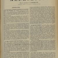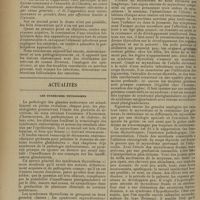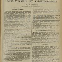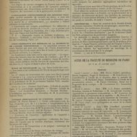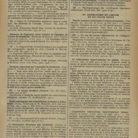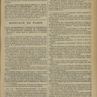 0018 - Page 8 - Actualités. Le rein des hérédosyphilitiques. [M. Brelet] / Sociétés savantes. Société médicale des hôpitaux. (Séance du 22 décembre 1922). Hirsutisme chez un garçon de dix ans. Métabolisme basal. MM. Apert, Stévenin et Broca / Insuffisance aortique par dilatation de l'anneau aortique. M. Barié, à propos de la communication de M. Bergé / Traitement des syndromes parkinsonniens par injections intraveineuses de liquide céphalo rachidien. M. Souques (à propos du cas de MM. Bourges et Breuil), un travail sur le même sujet avec M. Mouquin / Myoclonie. Epilepsie non familiale. MM. Sicard et Jacques Lermoyez / Traitement de la syphilis héréditaire. M. M. Pinard / Comparaison des méthodes de recherches du bacille de Koch dans les crachats par examens directs et par le milieu de Pétrof. M. G. Caussade et Mme Cribier / Tyrosino-réaction dans le diagnostic de la tuberculose pulmonaire. MM. Pissavy et Monceaux / Abcès du bras droit au cours d'une gonococcie. M. Léri et Luton, à propos de la communication de M. Klippel