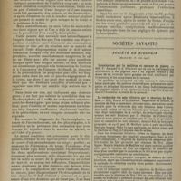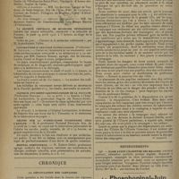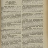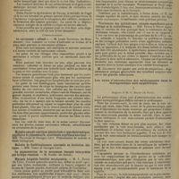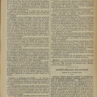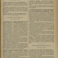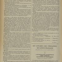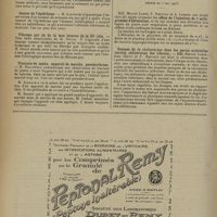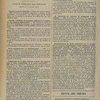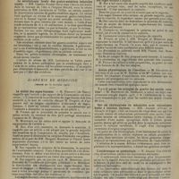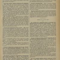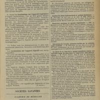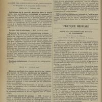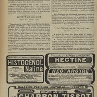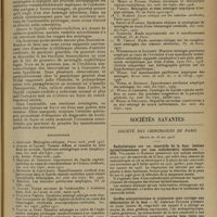 0021 - Page 11 - Sociétés savantes. Société de pédiatrie. (Séance du 19 décembre 1922). Hémorragie cérébrale chez un enfant de trois ans. M. Jules Renault et Mlle Labaume / Deux cas de scoliose congénitale par hémivertèbre. MM. Mouchet et Roederer / Double pied bot et luxation unilatérale de la hanche. M. Roederer / Méthode d'oxygénation permettant de faire respirer un nourrisson dans une atmosphère riche en oxygène. MM. Ribadeau-Dumas, Jean Meyer et Demerliac / Société de biologie. (Séance du 23 décembre 1922). Influence de quelques agents pharmaco-dynamiques sur le réflexe oculo-cardiaque et sur le réflexe solaire. MM. H. Claude, J. Tinel, D. Santenoise / Technique de la recherche des réactions vaso-motrices cutanées locales. M. E. Juster / Action des substances excitantes sur la leucopédèse gastrique. MM. Loeper et G. Marchal / L'inflammation du foie. M. E. Géraudel