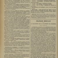 1498 - Page 1512 - Sociétés savantes. Académie de médecine. (Séance du 20 novembre 1923). Prophylaxie des vomissements postanesthésiques. M. Raoul Blondel / De l'utilité de mouvements actifs et passifs de l'abdomen pour fortifier les organes intraabdominaux chez la femme et chez l'enfant. Mme Laurka / Société médicale des Hôpitaux. (Séance du 16 novembre 1923). Diabètes infantiles traités avec succès par l'insuline. M. Apert / Rareté de la chlorose. M. Rist