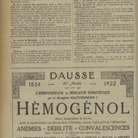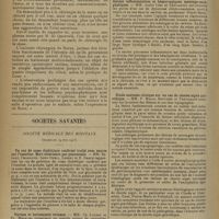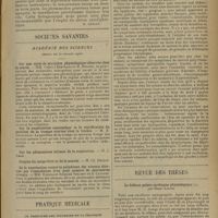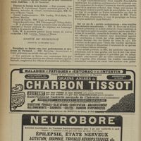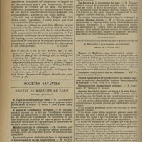 0102 - Page 94 - Sociétés savantes. Société de chirurgie. (Séance annuelle du 17 janvier 1923) / Société de médecine de Paris. (Séance du 12 janvier 1923). A propos de la gastroptose. M. Mazeran / A propos des rapports de la Clinique et de la radiologie. M. Dartigues / Jeûne thérapeutique. M. M. Natier / Le nez concave. M. Bourguet / A propos de l'épilepsie. M. Leredde