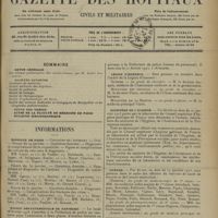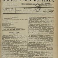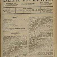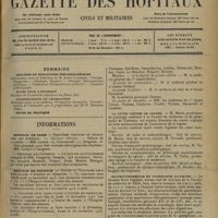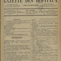 - Gazette des hôpitaux civils et militaires (Lancette française), 1828-1947 ; table: 1887 à 1914