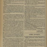 0070 - Page 62 - Sociétés savantes. Société de neurologie. (Séance du 14 décembre 1922). Sur un cas de « parésie jacksonnienne » avec troubles vaso-moteurs concomitants. MM. H. Bouttier et Pierre Mathieu / Les troubles de la sécrétion cérumineuse dans le syndrome de Cl. Bernard-Horner. M. L. Cornil / Gliome infiltré du lobe temporal droit ayant envahi la corne occipitale du ventricule latéral correspondant : épendymite granuleuse des cavités ventriculaires. MM. André Thomas et J. Jumentié / Sur un cas anatomo-Clinique de syndrome thalamique dissocié. MM. H. Bouttier, Ivan Bertrand et André Pierre-Marie / Livres nouveaux. Le curettage utérin, indications, technique, accidents, résultats, par J. Fiolle... [Paul Delmas] / Hygiène de maman et de bébé : grossesse, accouchement, allaitement, par L. Pouliot... [Paul Delmas]