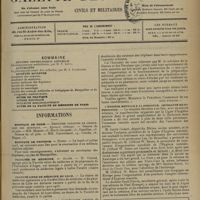 1536 - Page 1550 - Informations. Hôpitaux de Paris. Prix Civiale / Faculté de médecine de Paris. Création d'une nouvelle chaire / Facultés de médecine. Lyon / Légion d'honneur. Ministère de l'intérieur / Société de médecine publique et de génie sanitaire / Un Institut de technique sanitaire / Nécrologie / Le Docteur Deny. [Nécrologie]. [A. Brochin]