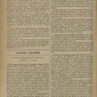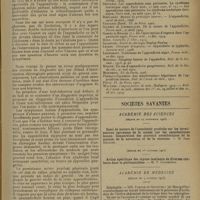 0099 - Page 91 - Sociétés savantes. Académie des sciences. (Séance du 8 janvier 1923). L'étain dans l'organisme humain. M. Emile Misk / Sur les propriétés différentes des poussières microbiennes sèches ou liquides. M. A. Trillat / Société de chirurgie. (Séance annuelle du 17 janvier 1923)